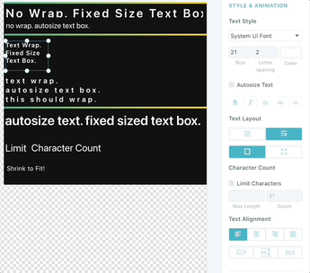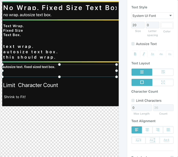 For example, if you want a fixed text box where the text wraps when it overflows, then you would select the options Fixed Text Box and Wrap.